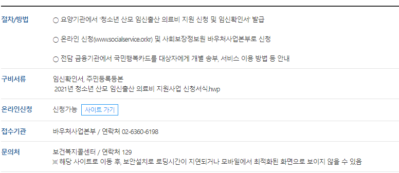 청소년 산모 임신출산 의료비 지원금 신청홈페이지 <---- 클릭