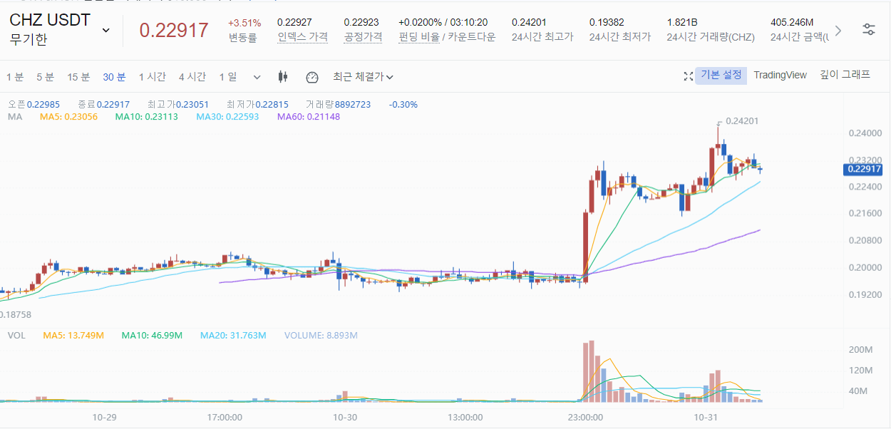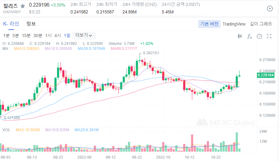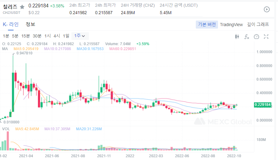 2-1) MEXC 거래소 CHZ 코인 칠리즈 전망 현물거래 차트