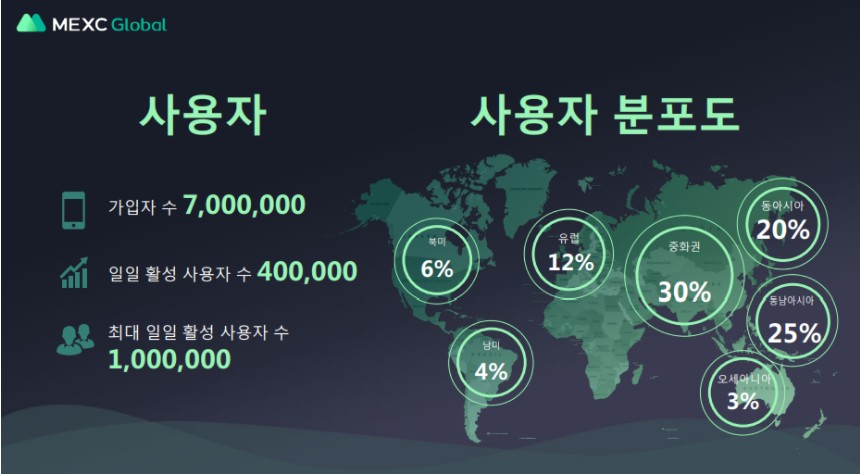 가입자수 700만 명 이상 일일 사용자수 40만 명 이상 사용하는 MEXC 코인 거래소입니다.