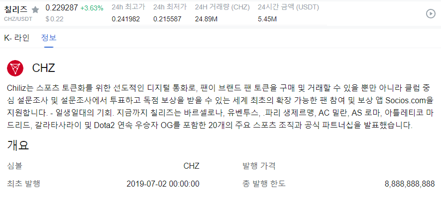 CHZ 코인 칠리즈 목표가 등을 알아보도록 하죠.